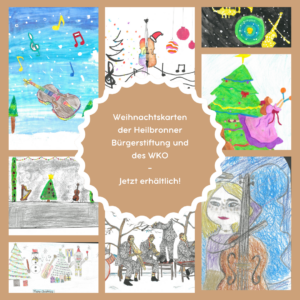 Es gibt sie auch in diesem Jahr, die weihnachtlich-winterlich-musikalisch gestalteten Postkarten der Heilbronner Bürgerstiftung und des Württembergischen Kammerorchesters Heilbronn. Erstmals wurde im vergangenen Jahr diese Aktion von Bürgerstiftung und dem WKO gemeinsam entwickelt und durchgeführt, die jetzt fortgeschrieben wird: In Heilbronner Einzelhandelsgeschäften, der Tourist-Info an der Kaiserstraße sowie in der Geschäftsstelle der Heilbronner Bürgerstiftung (bitte Geschäftszeiten Montag bis Donnerstag vormittags beachten) und anlässlich der Abo-Konzerte des WKO in der Harmonie sind Benefiz-Weihnachtspostkarten zu drei Euro das Stück zu erwerben. Deren Motive stammen von Heilbronner Schülerinnen und Schülern bis einschließlich der 7. Klassenstufe. Gemalt wurden über zweihundert winterliche und musikalische Motive, die besten sind auf den Karten zu finden. Ziel dieses Projekts war und ist, junge Menschen zu gesellschaftlichem Engagement zu motivieren. Auch der Zusammenhalt zwischen wichtigen Heilbronner Institutionen wird gestärkt. Die Gesamteinnahmen gehen hälftig der Bürgerstiftung und dem WKO zu für Kinder- und Jugendprojekte musikalischer Art.